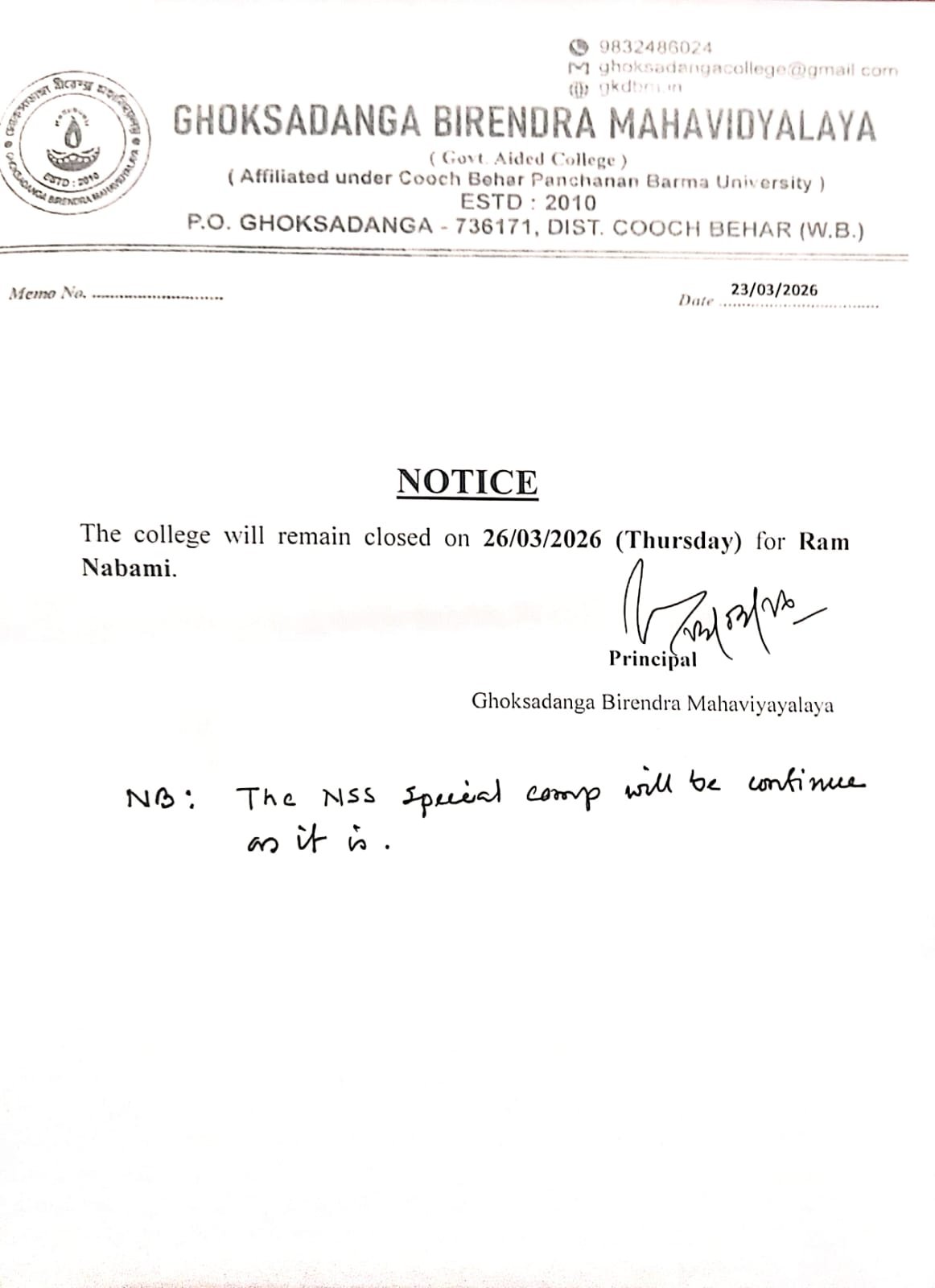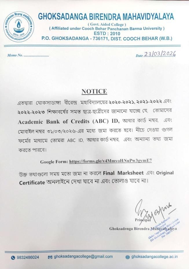 Welcome to Ghoksadanga Birendra Mahavidyalaya