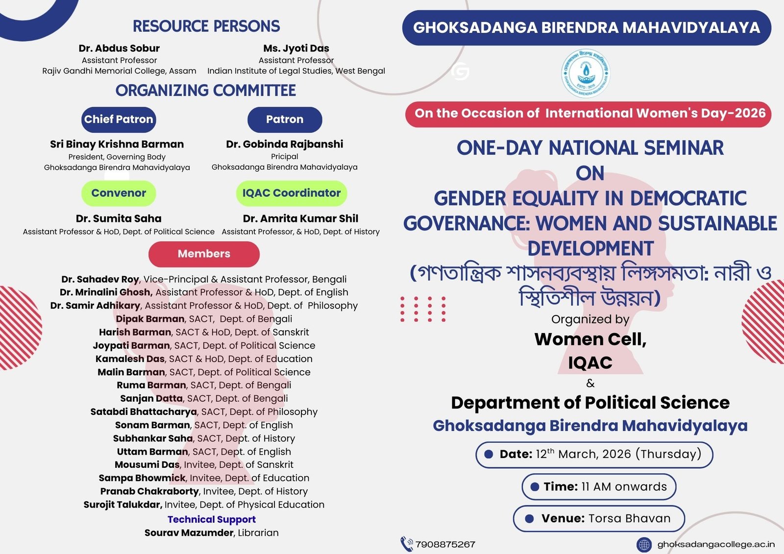 | 14/02/2026 | IQAC: Ghoksadanga Birendra Mahavidyalaya | One-Day National Seminar on Thakur Panchanan Barma: Past and Present | Click Here |